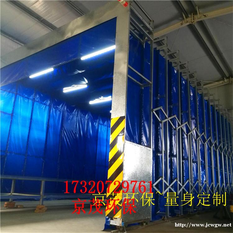 河北京茂伸缩移动喷漆房的特点,伸缩房展开后可形成有效密闭作业环境,收缩后又可以使工作场地开阔,在无需进行喷漆流程的工作时间内,可将前室并拢,节省空间场地,作为其它与喷漆交叉作业的工序所使用。喷漆房整体由伸缩房体、集中式漆雾废气净化系统、排放系统、安全报警装置、照明系统及控制系统组成。