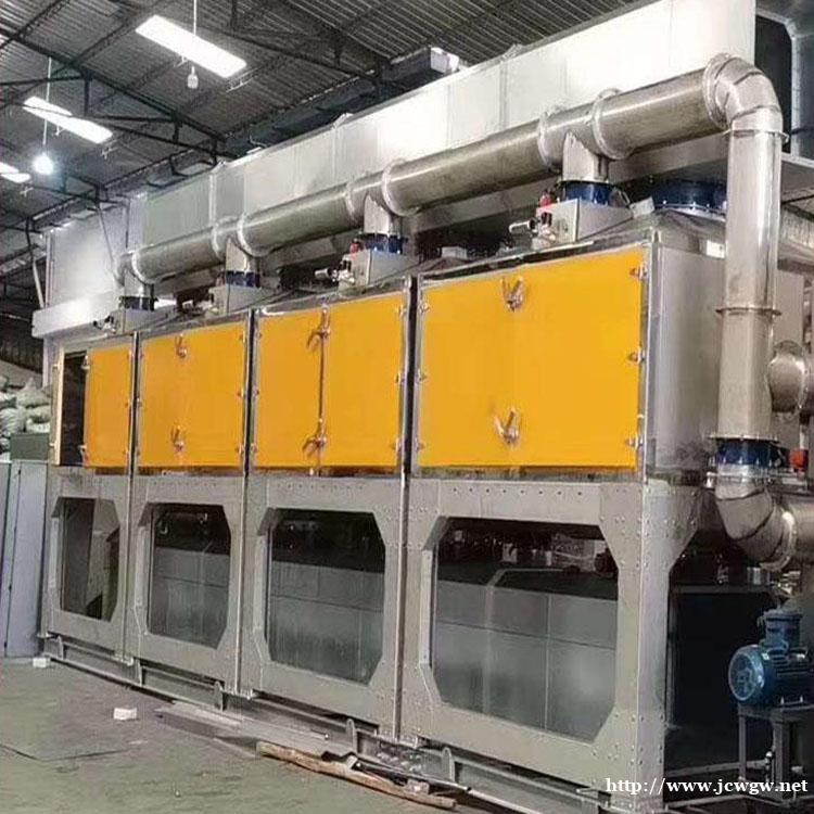 c.经济实惠:当有机废气的流量大、浓度低、温度低,采用催化燃烧需耗大量燃料时,可先采用吸附手段将有机废气吸附于吸附剂上进行浓缩,然后通过热空气吹扫,使有机废气脱附出来成为浓缩了的高浓度有机废气(可浓缩10倍以上),再进行催化燃烧。此时,不需要补充热源,就可维持正常运行.