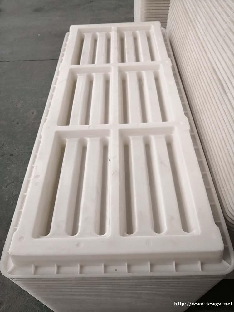 4、本模具设计合理,操作简单,所生产的水泥漏粪板尺寸设计合理,孔洞边角呈圆弧状,不伤猪蹄,孔洞上小下大呈梯形状,漏粪效果好,基本上不用水冲刷,即节省人力,又节约资金,更重要的是为处理污水减轻负,广泛应用于猪牛羊等养殖行业,深受广大客户的好评;