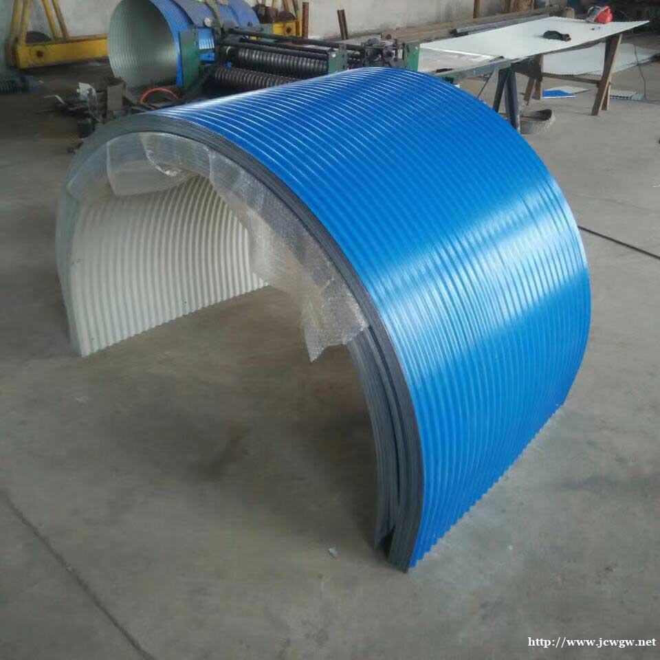 1、看产品的表层是不是光滑。品质好的圆弧彩钢瓦防雨罩在生产出来之后,它的表层应该是光滑的,而且它的表层上色应当比较均衡,不应该有凹陷、小坑等状况出现。